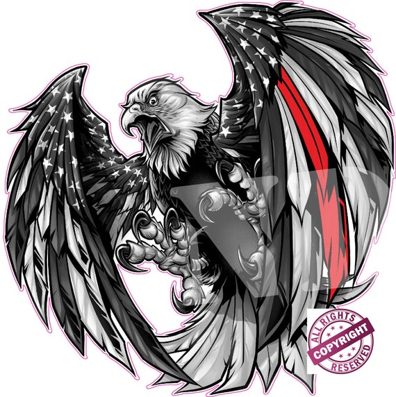 Thin Red Line First Responders American Flag Eagle decal UV Laminated